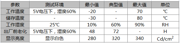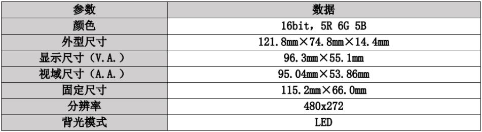 显示性能参数: 工作环境和可靠性参数: 存储器特性: