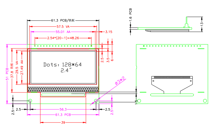 安装方便,电路板尺寸为 61.3mm X 51mm,安装孔 Ф3.0mm,模块高度为 13mm。